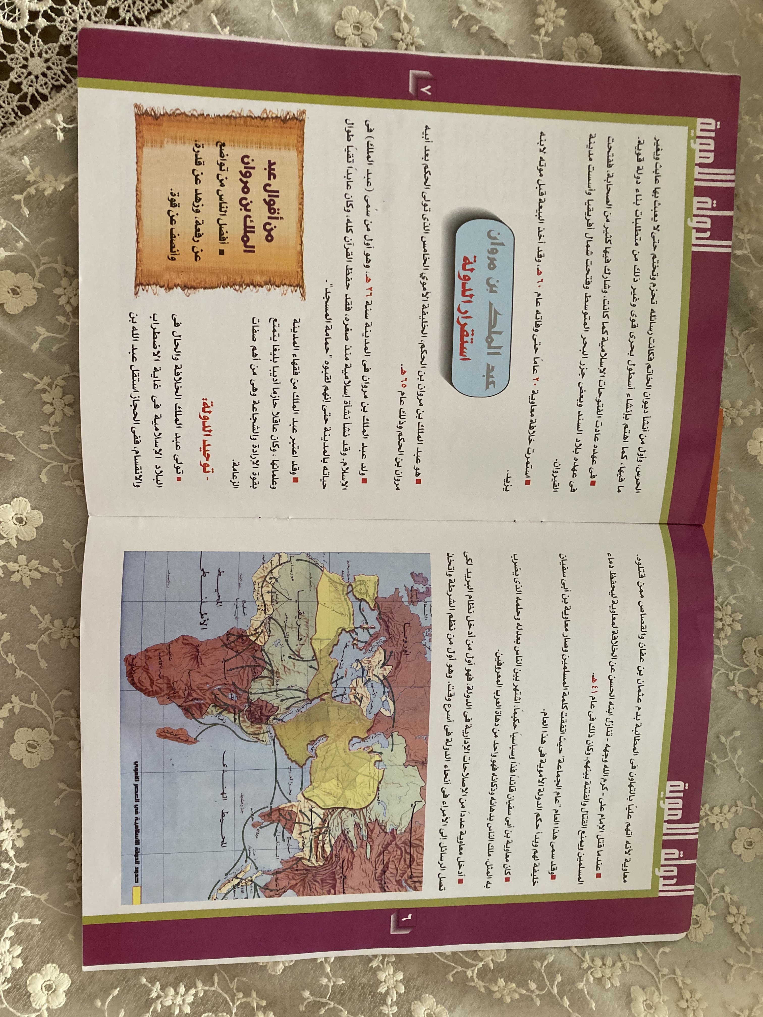 يتضمن كل كتاب خرائط وخطوط زمنية ومعلومات تاريخية عن الخلفاء والملوك الذين تولوا زمام الأمور فيها.