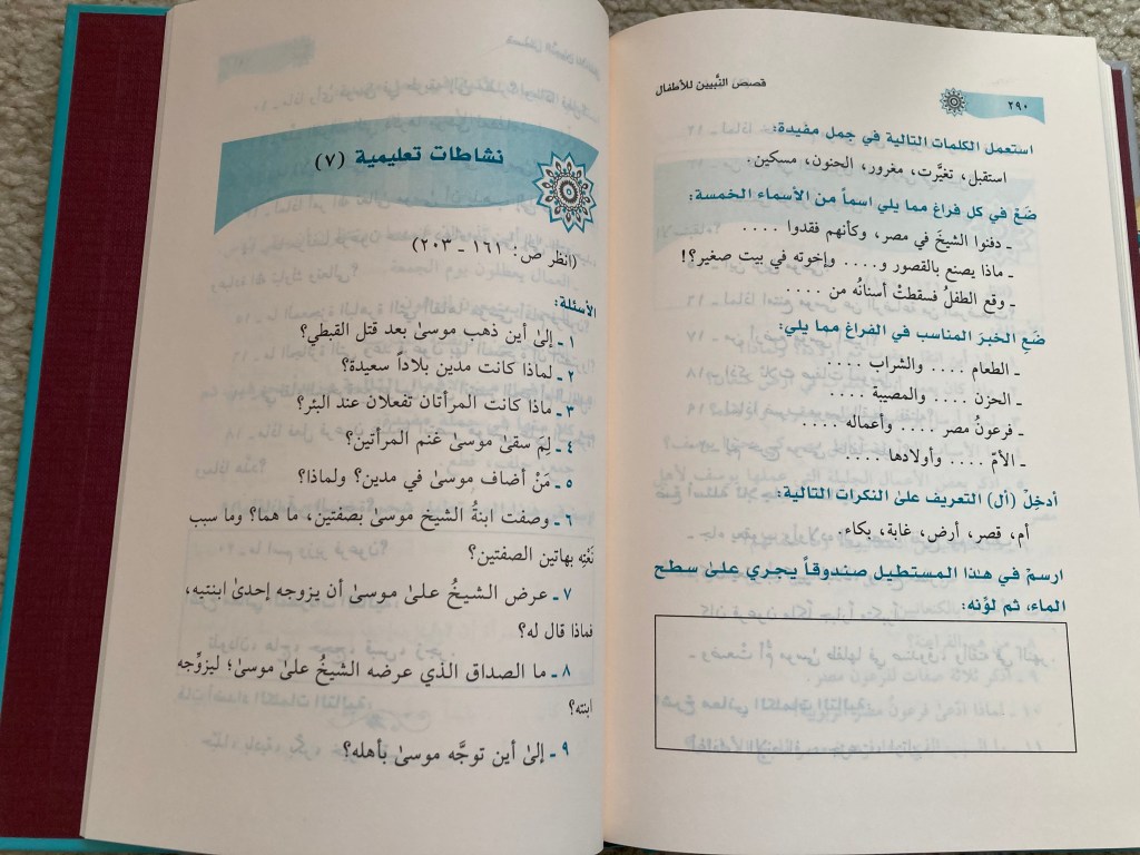 يحتوي بعض الأوصاف التي تخالف التوحيد من قبر النبي صلى الله عليه وسلم والتبرك بنزول المطر. لكنها فرصة لتوضيح هذه الأمور مع الأبناء.