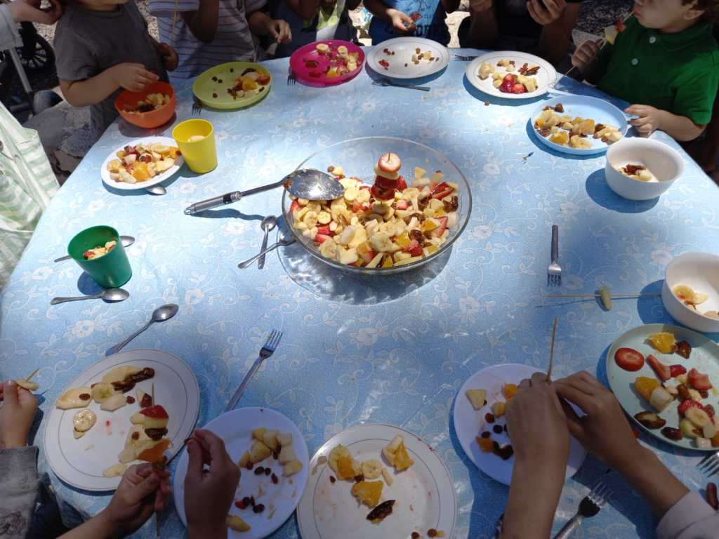 اخترنا أن نتناول وجبة الفطور في الحديقة القريبة من الشاطئ، ويحضر الأطفال سلطة الفواكه هناك. فلم تكن وجبة الغداء في القائمة. ويكون الختام مع الثالثة.