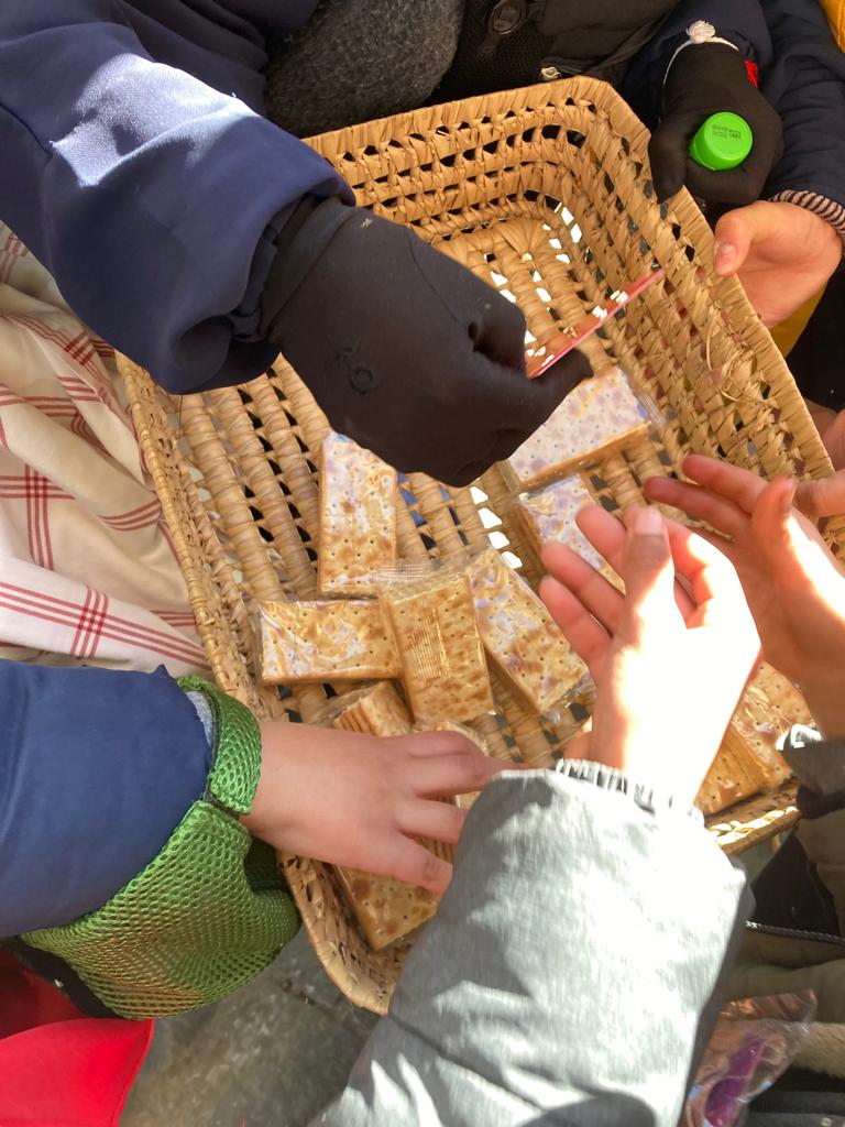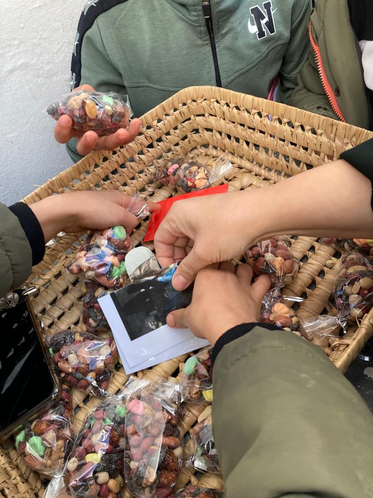قسم الأطفال والأمهات على ثلاث مجموعات، لكل مجموعة لون خاص وكيس خاص بها، سيستعملونه لاحقا.
