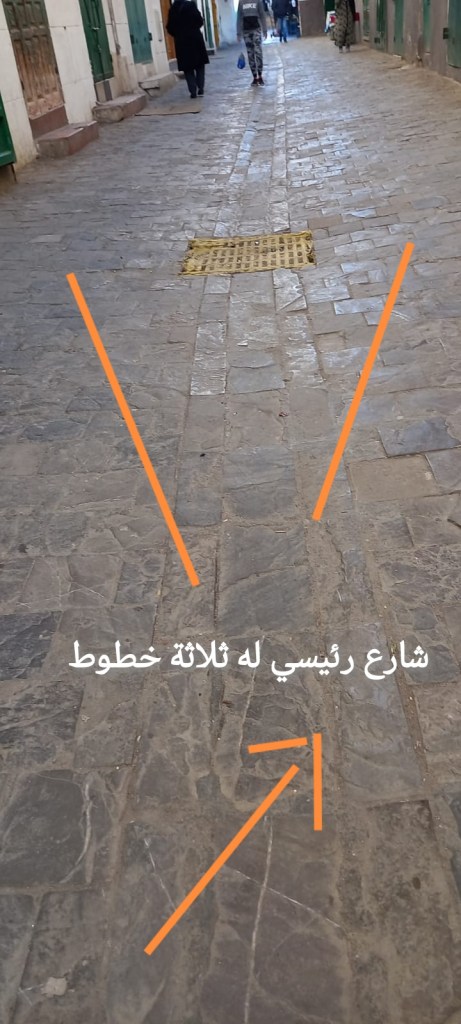 شارع رئيسي، وتميز بوجود ثلاثة خطوط في وسط الطريق