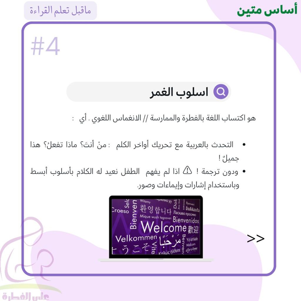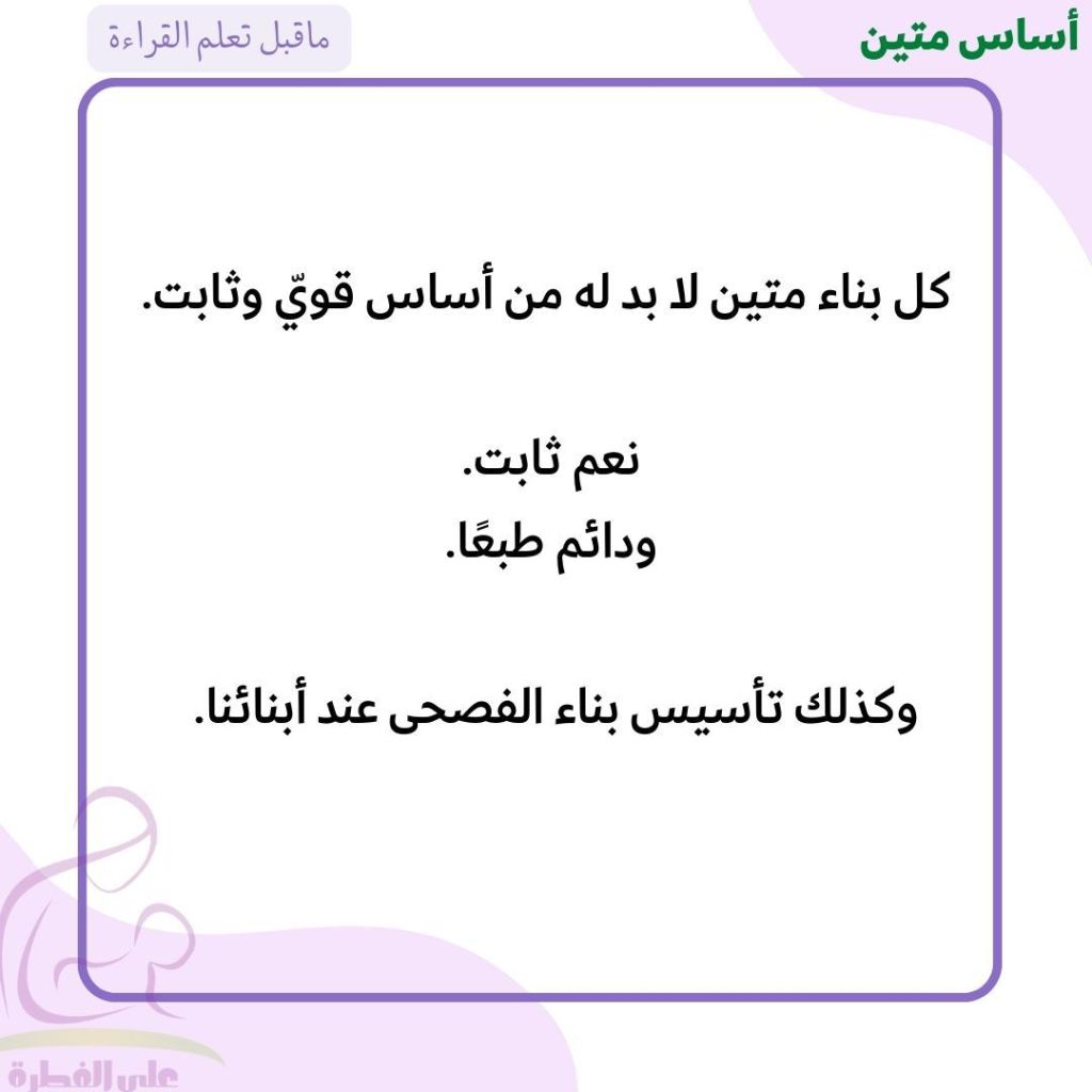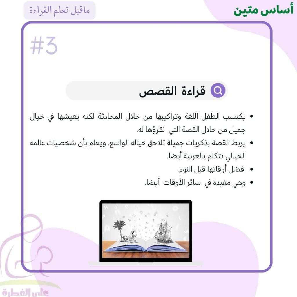 وهذا الأساس نبنيه لدى الطفل قبل مرحلة تعلم القراءة، بل هو ما سيساعدنا لتعليمه القراءة لاحقًا باذن الله.