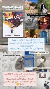 🔻- ملف ” مراحل تصميم كتاب ذاكرة منصور” يبين مراحل إنجاز الرسومات/ جمعتُ الصور من حساب الرسامة ديالا زادة :