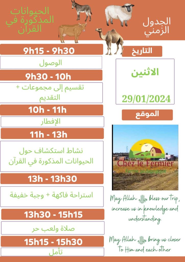 خرجة يناير 2024 : مزرعة “عند المزارع chez le fermier”