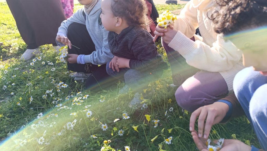 – لعب حر في المكان ثم فطور : استكشاف المكان، ونشاط التحديات ثم الفطور