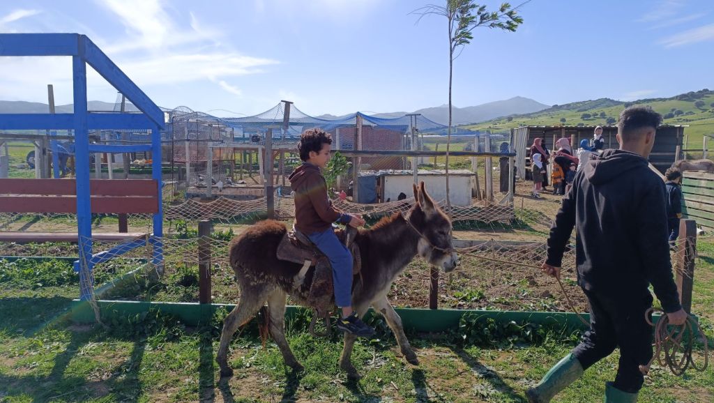 – أنشطة مع الحيوانات : تقسيم الأطفال إلى مجموعتين، الكبار و الصغار.. مجموعة ستحلب البقرة وتقصّ صوف الخروف، والثانية ستبدأ بورشة النسيج بعدها ركوب الحمار.