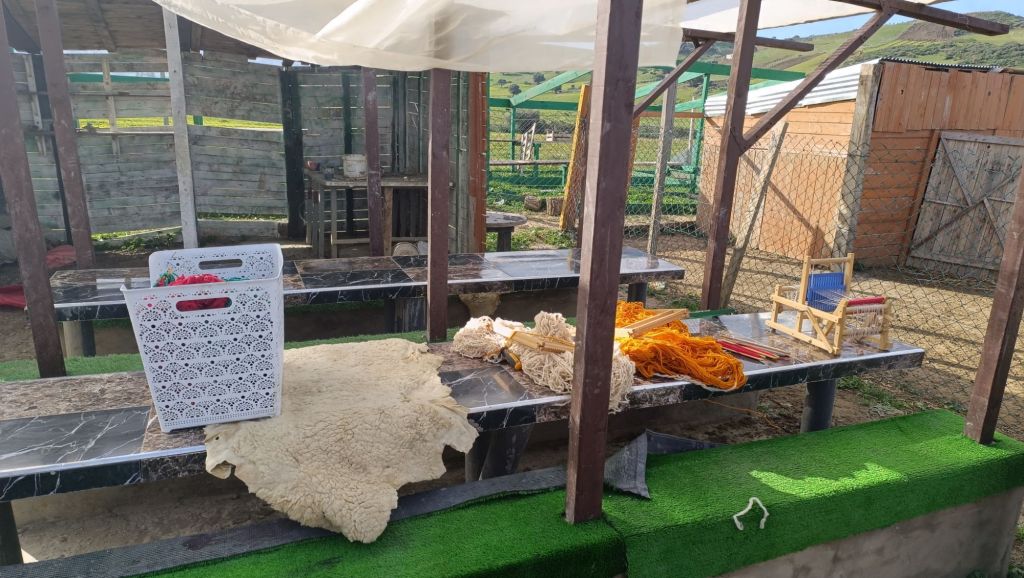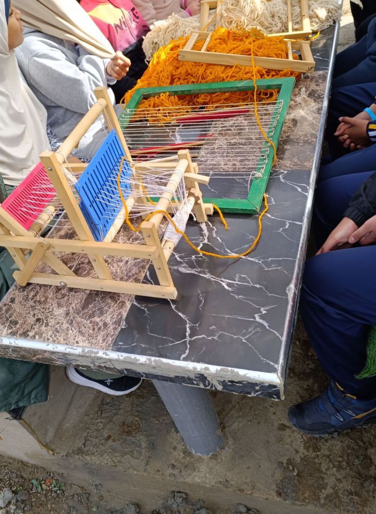 قدّم لهم المؤطر الادوات المستعملة لصناعة النسيج. تبدأ المرحلة بجزّ الصوف، ثم غسله وتنشيفه، وبعدها (حكّه بالمشط الخاص). نسيت اسم المرحلة، وبعدها تصنع خيوط تكون صالحة للنسج. يمكن إضافة ملونات طبيعية للخيوط إن أردنا تلوينها.